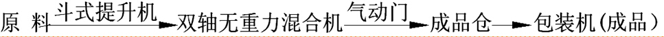 節(jié)能型生產(chǎn)線,由脈沖除塵器、斗式提升機(jī)、雙軸無重力混合機(jī)(含飛刀組)、成品倉(含二次攪拌)、自動定量包裝機(jī)(閥口式&敞口式)、鋼架平臺、空壓機(jī)、氣路系統(tǒng)、電氣控制柜等組成的中型流水作業(yè)體系。